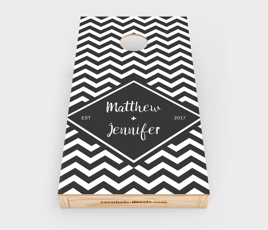 Chevron Wedding Cornhole Wrap Design – Charcoal & White