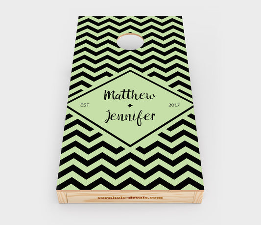 Chevron Wedding Cornhole Wrap Design – Black & Pale Green