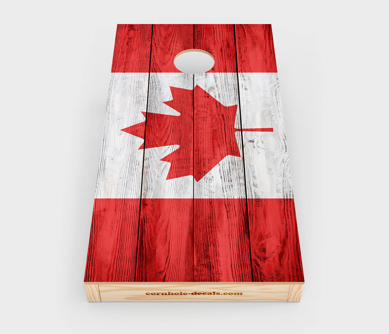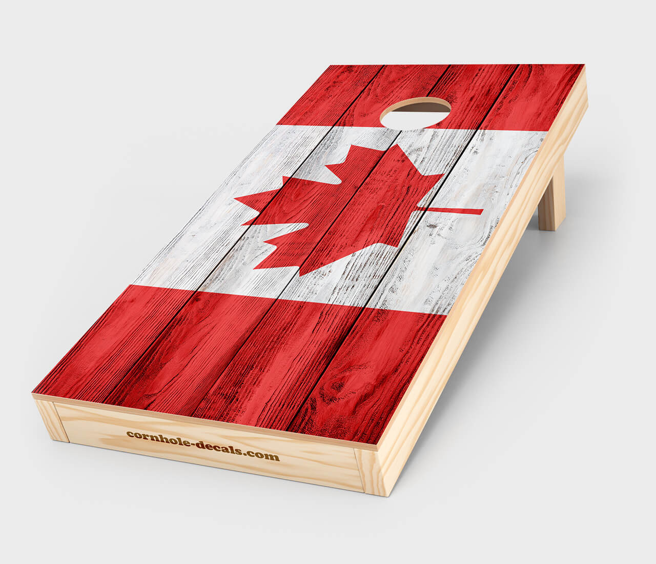 Chuggles Original Cornhole Designs are the perfect complement to any cornhole board. Stylize your cornhole board with this unique distressed Canadian flag cornhole design.